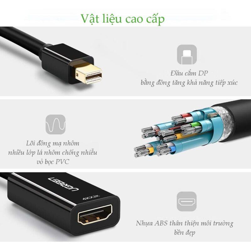 - Hỗ trợ độ phân giải cao: Cáp Mini Displayport Ugreen 10461 hỗ trợ độ phân giải lên đến Full HD 1080p, giúp đảm bảo chất lượng hình ảnh sắc nét và mượt mà khi xem phim, chơi game hoặc thuyết trình.