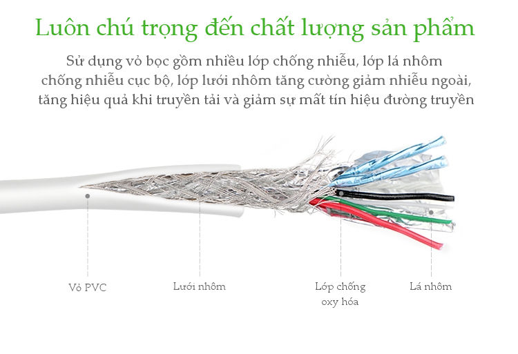 - Chất liệu cáp: Cáp chất lượng cao với lớp vỏ bọc chống nhiễu và bảo vệ tín hiệu tốt hơn