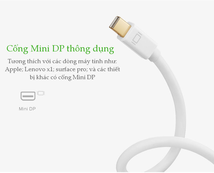 - Tương thích rộng rãi: Tương thích với các thiết bị có cổng Mini DisplayPort hoặc Thunderbolt như MacBook, Surface, máy tính xách tay Windows, và các thiết bị máy tính khác. Đồng thời, hỗ trợ kết nối với các thiết bị có cổng HDMI như TV, máy chiếu, màn hình máy tính.